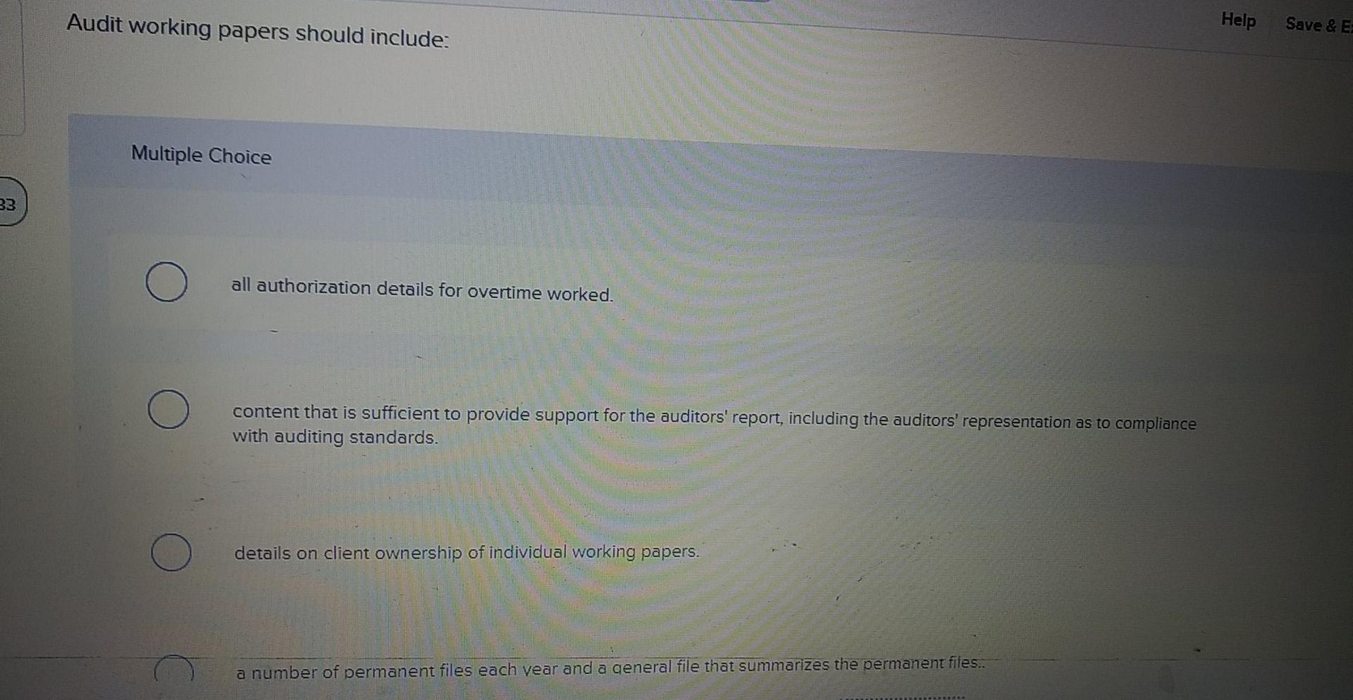 Audit working papers should not A. Help Save E Multiple. A number of permanent files each year.